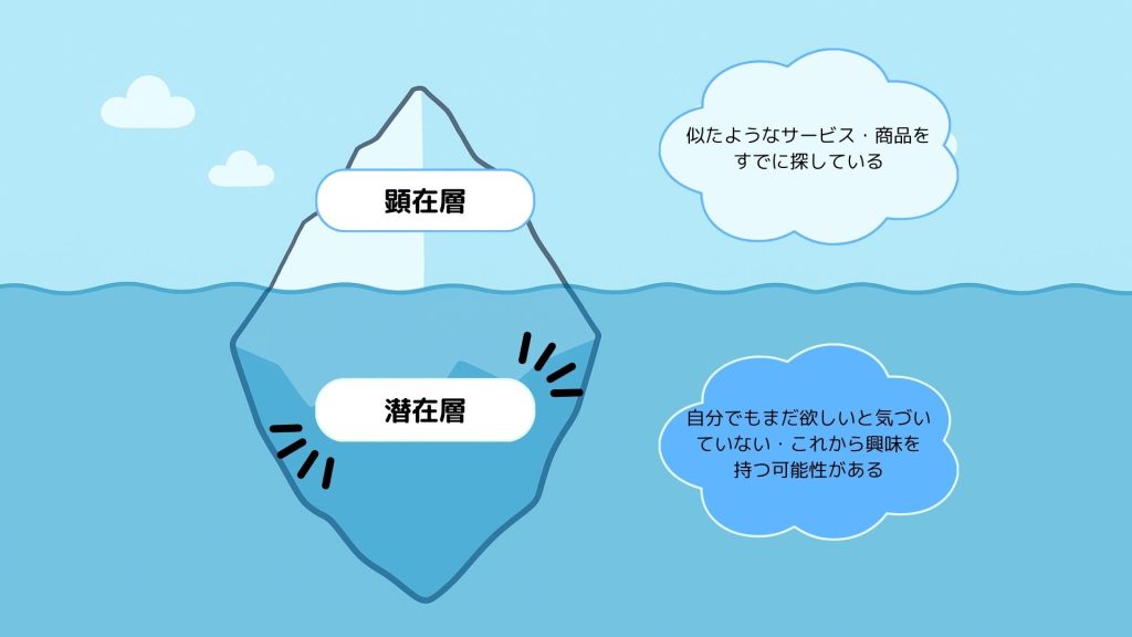 検索広告(Google検索連動型広告など)が「何かを探している人」(顕在層)にアプローチするのに対し、Meta広告はまだあなたのサービスを知らないけれど「興味を持ちそうな人」(潜在層)にアプローチできます。